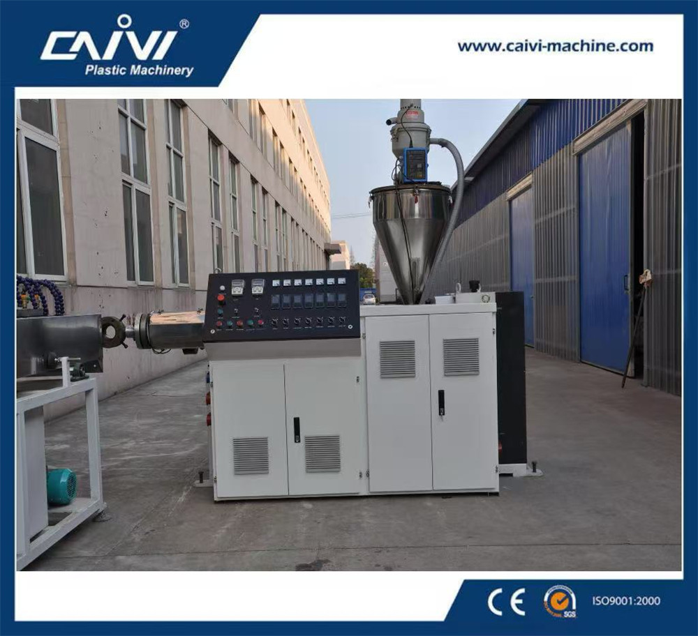 原料+助劑配制→混合→造粒→輸送上料→單螺桿擠出機(jī)→擠出模具→噴淋冷卻水箱→皮帶牽引機(jī)→編織機(jī)→預(yù)熱烘箱→單螺桿擠出機(jī)→包復(fù)模具→噴淋冷卻水箱→皮帶牽引機(jī) →計(jì)米裝置→收卷機(jī)→成品檢測(cè)包裝